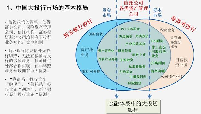 在投资银行业务方面,券商系投行重在牌照,信托系投行重在通道,而银行系投行重在资源。对比来看,个人认为这个市场上最接地气的就是商业银行投资银行,其优势在于有足够的实体经济样本数,因此可以覆盖足够多的行业,从而更快的发现机会和风险。